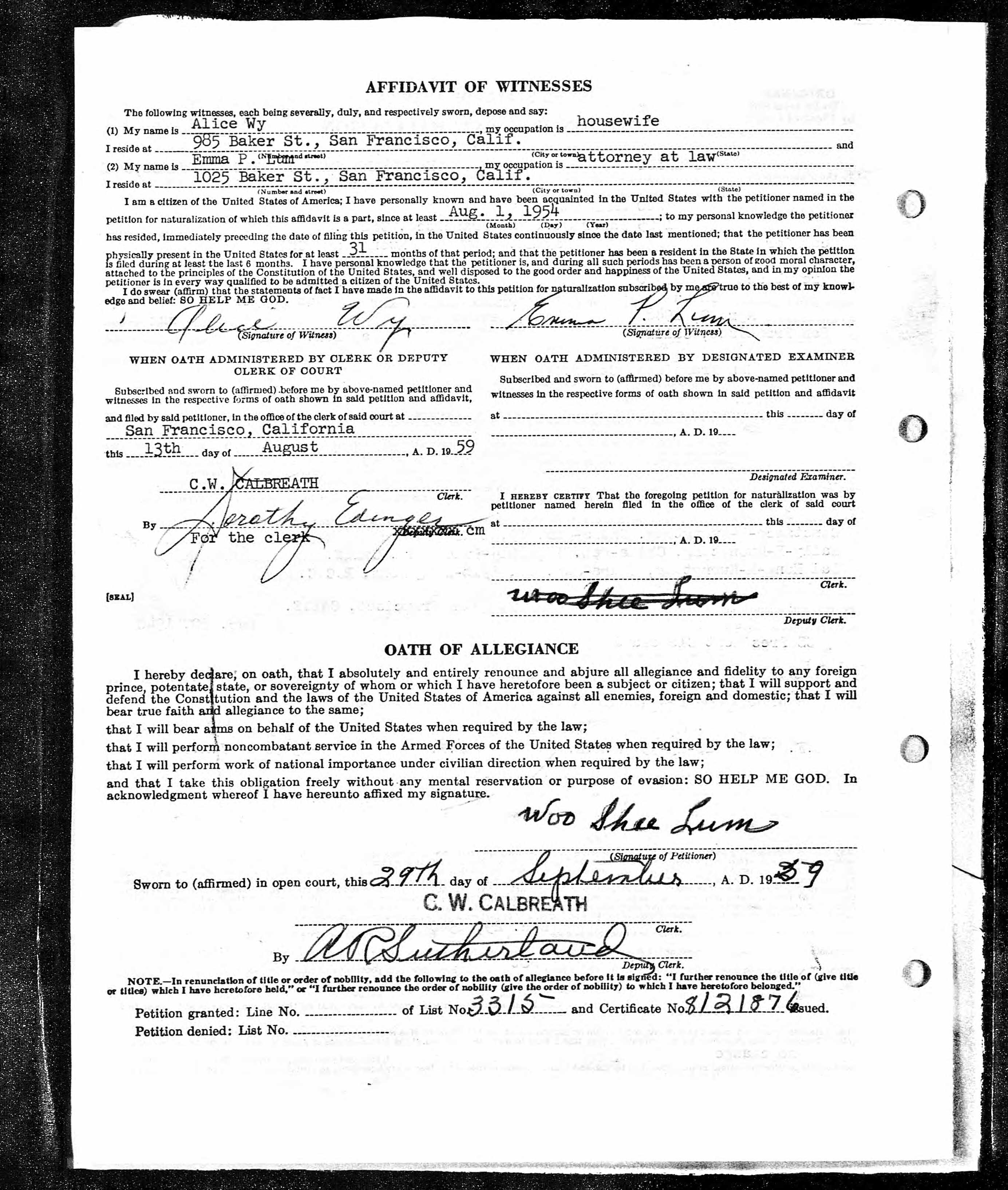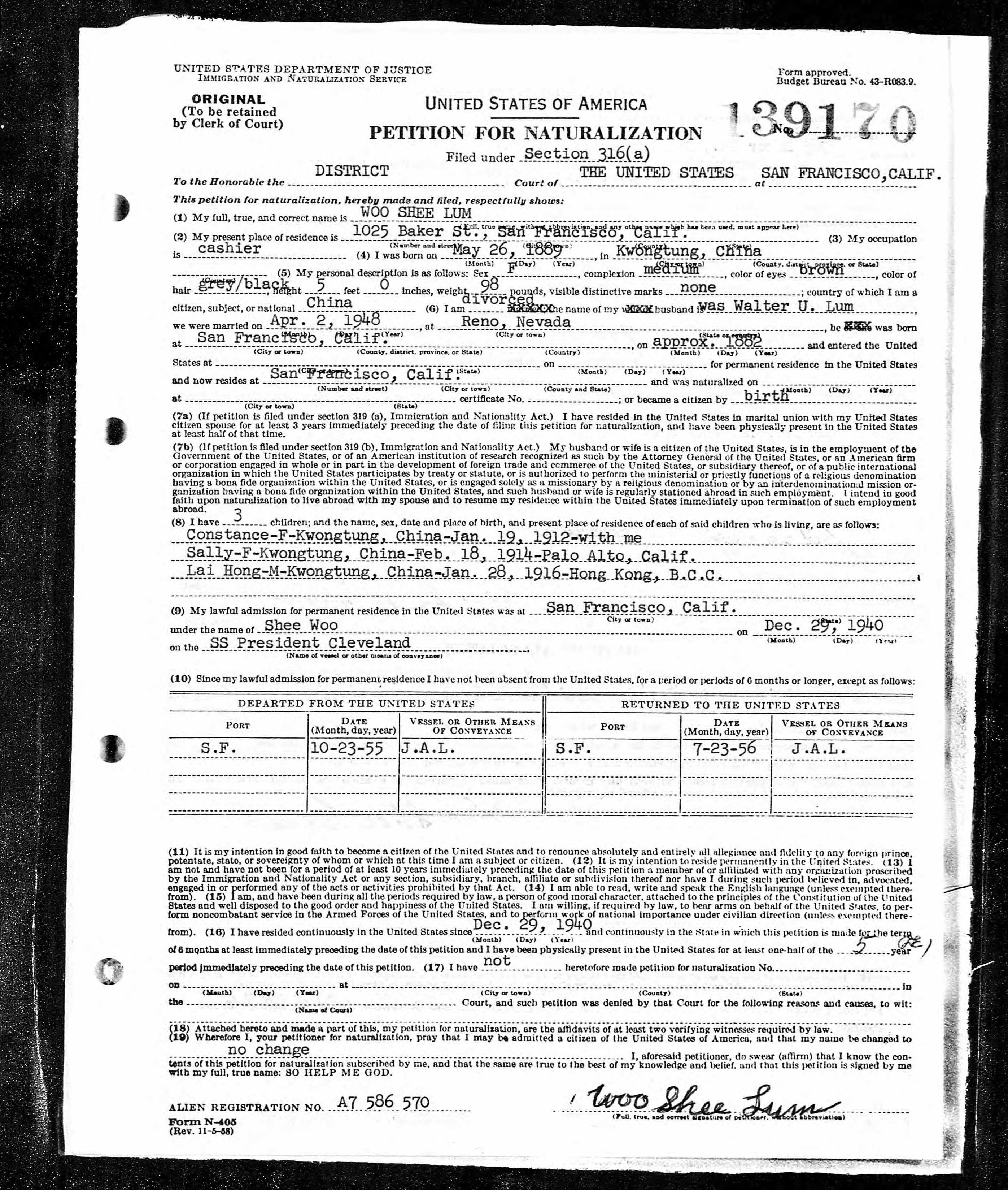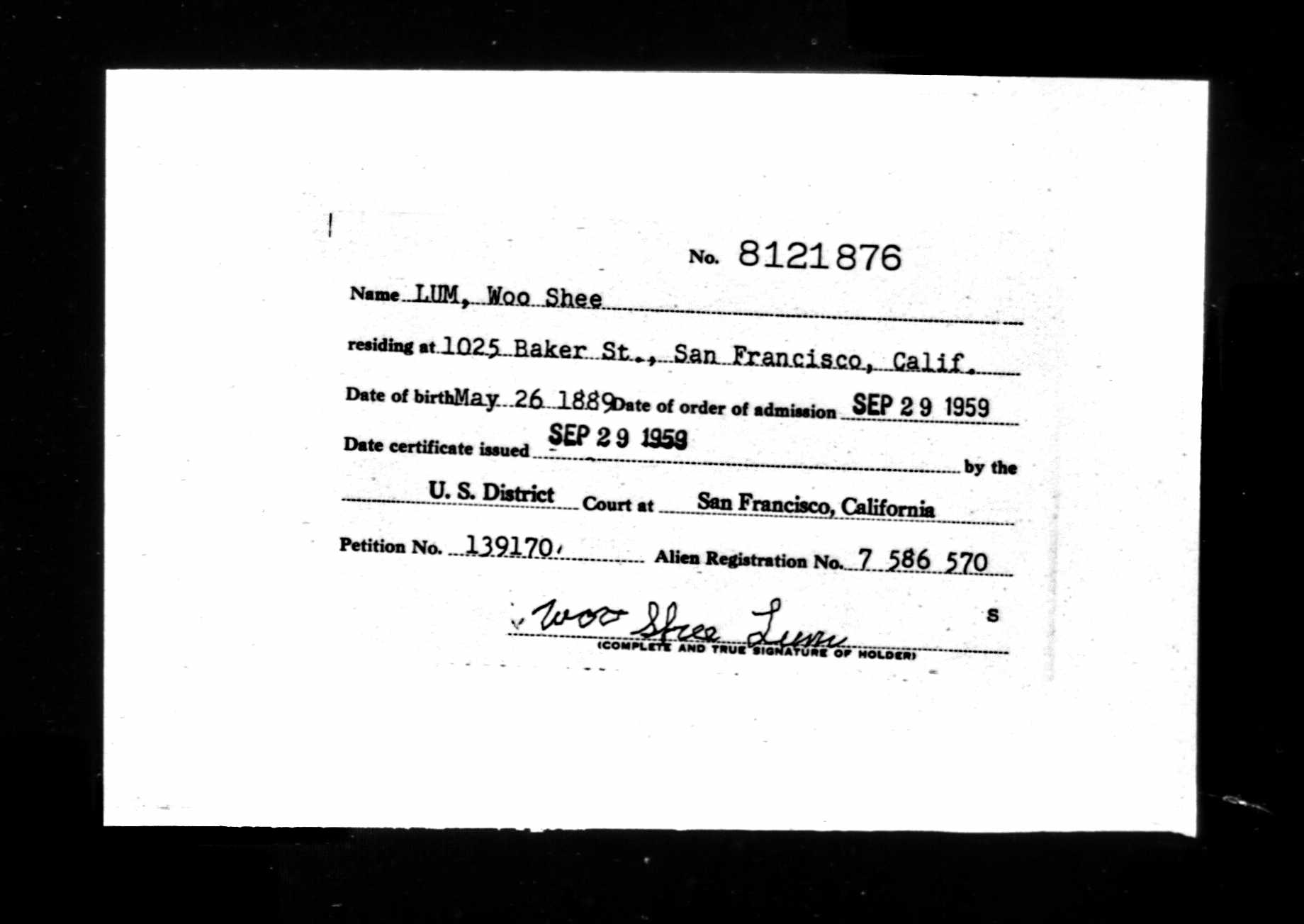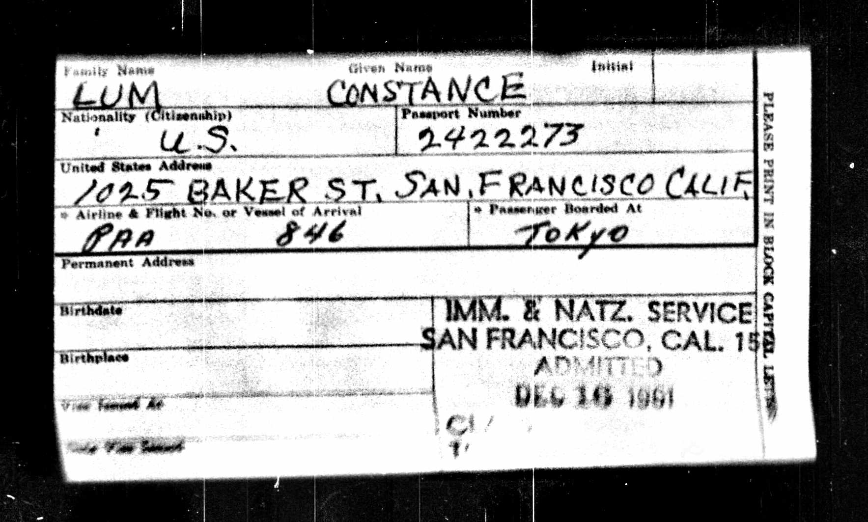 Woo Shee "Woo S Lum" LumMarried to: N.N. Lum, son of N.N. Lum and N.N..Children: 1. Constance "won lai Lum, Chow Lai Soo" LumAlso known as: Soo Chow Lai, also known as: Connie Lum, born 19 Jan 1912 at Canton, China, died 26 Aug 1993 at San Francisco, 81 years 23 Jul 1935 - Interesting Article of her having a creepy admirer https://www.newspapers.com/newspage/457787960/ view-source:https://www.newspapers.com/newspage/457787960/ Interesting Article of her It looks like we can look at this article here: https://oac.cdlib.org/findaid/ark:/13030/hb6t1nb85b/entire_text/ box 621, sleeve 092831_03 Constance Lum, Anthony Y. Seto and Chin Yick. 1935-07-22 BANC PIC 2006.029--NEG Creator/Collector: Randebaugh Looks like she was in Cuba some time during her traveling years: http://bqcc.com/en/portfolio/havana-divas/ Check the Background tab look for So Chow Lai Was she in movies? https://en.hkcinema.ru/film/2461 Also have a half-sister named Soo Chow-Moi(Mui?) 2. Ping Lai Hong "Shirley" TomAlso known as: Soo Chow Ping, born 18 Feb 1914 at Canton, China, died 18 Nov 1991 at Santa Clara, 77 years 3. Lai Hong LumBorn 28 Nov 1916 at China, died 14 Feb 2009 at San Francisco, 92 years Wong Bo Gwun How Military Academy His Grandmother remarried as a Lum. Mom's Great Grandfather was a Wong, but took the remarried last name of Lum. 4. Ping Lai "Ping Lai Tom, Chow Ping Soo, Chow Ping Soo, Ping L" LumBorn 18 Feb 1914 at Canton, Kwongtung Prov, China, died 1997 at California, 82 or 83 years | |||
